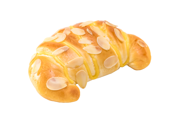 CHEESE CRESCENT – Bánh mì phô mai viên : lớp trong của bánh là những viên phô mai con bò cười nguyên chất vị béo, mặt bánh phủ hạnh nhân & zigzag bởi những đường kem trứng sữa vàng óng.