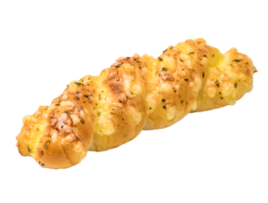 CHEESY BREAD – Bánh mì phủ phô mai & sốt mayonaise : nhân xúc xích xông khói, phủ ngoài là lớp kem trứng & chà bông heo tơi xốp vị mặn nhẹ.
